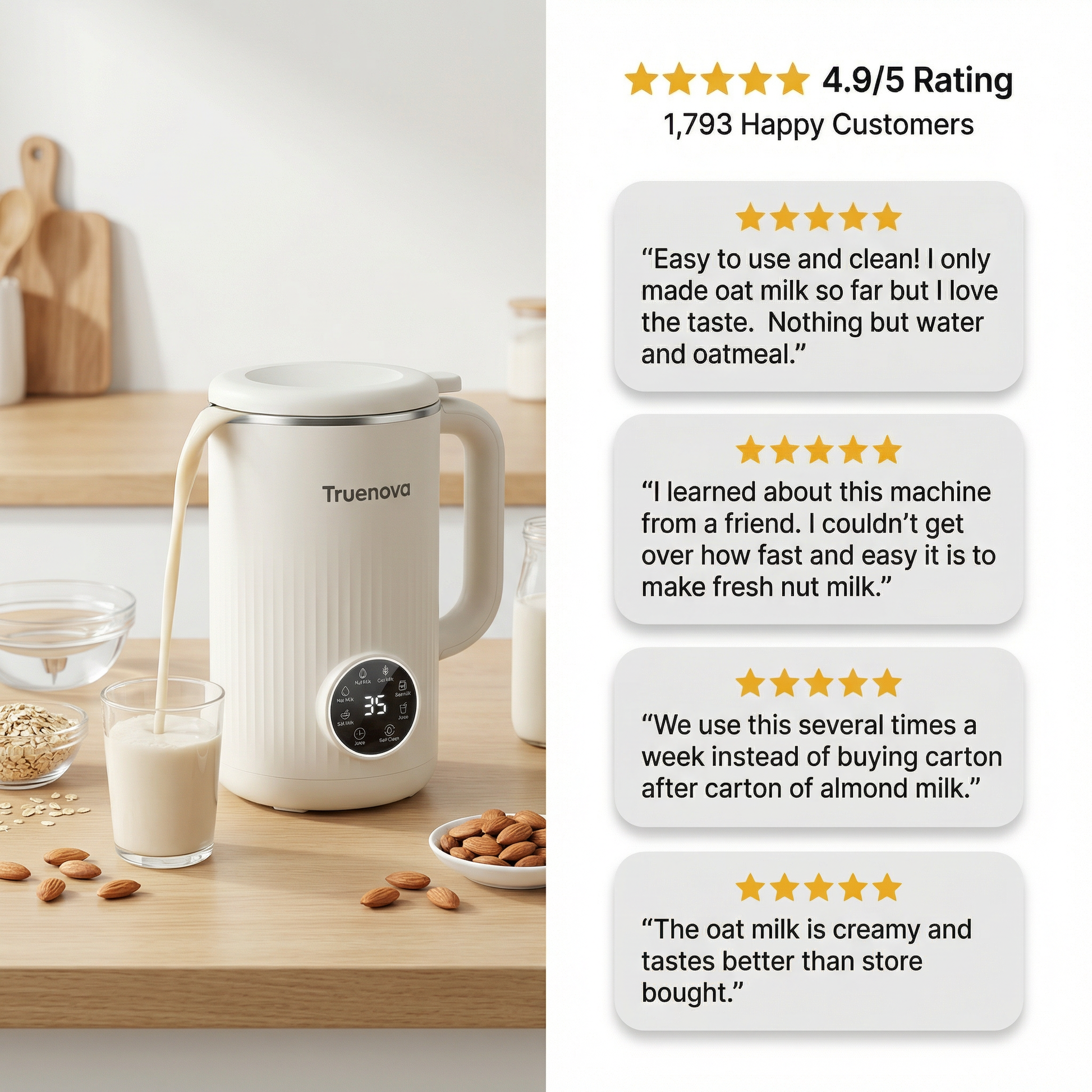 This machine saves you money by turning simple nuts and water into fresh, creamy milk anytime you want. No more overpriced cartons, no hidden sugars, no preservatives. One small bag of almonds can make multiple batches, cutting your grocery bill while giving you cleaner, better-tasting plant milk on demand.